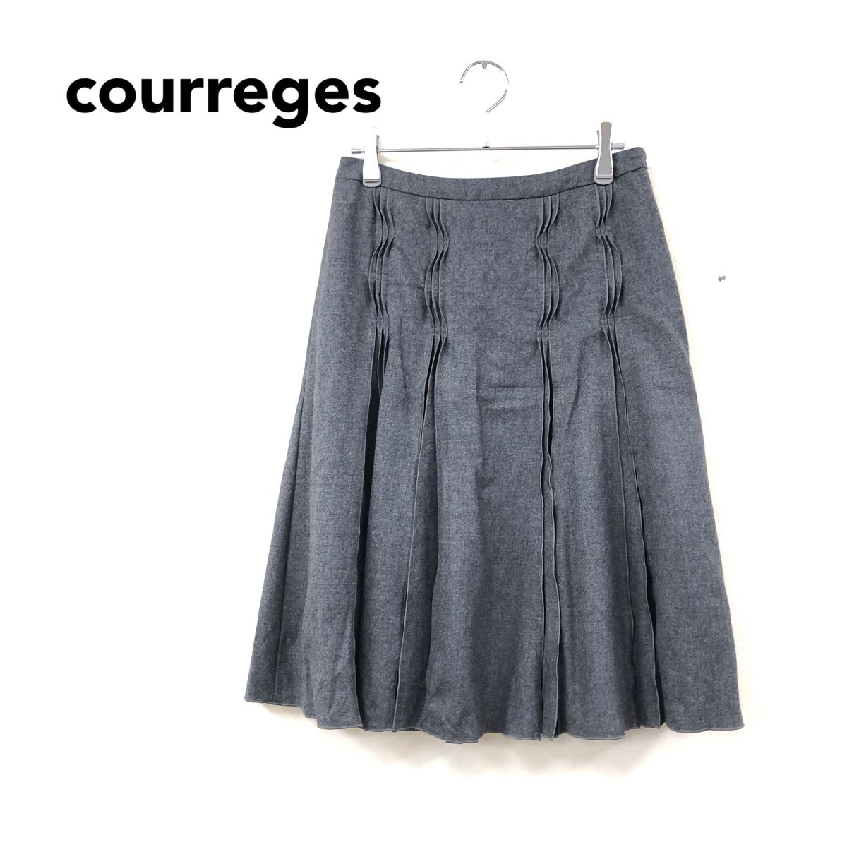 > 2K2032-Y-N◆courreges クレージュ ピンタックプリーツスカート ミディ丈 裏地あり サイドジップ レディース ガーリー ◆size38 グレー 毛