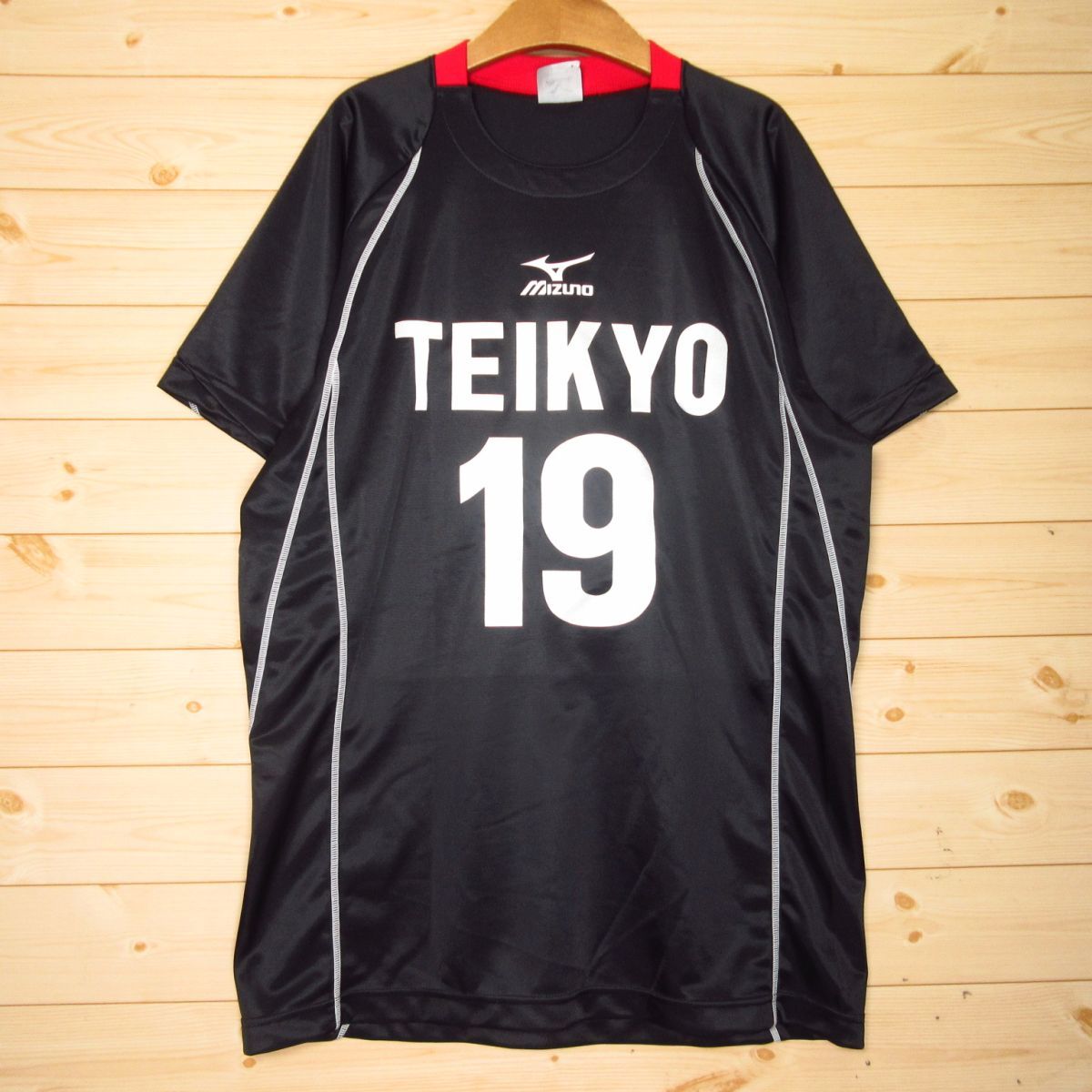 > ◎極美品!帝京高校 TEIKYO MIZUNO ミズノ ゲームシャツ 半袖 支給品 実使用 ユニフォーム メンズ 黒 Lサイズ◆AU0806