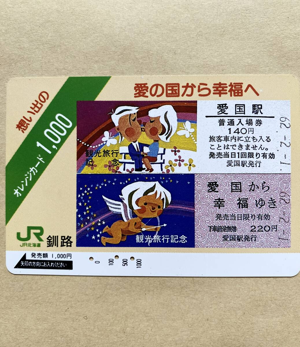 - 【使用済】 オレンジカード JR北海道 愛の国から幸福へ