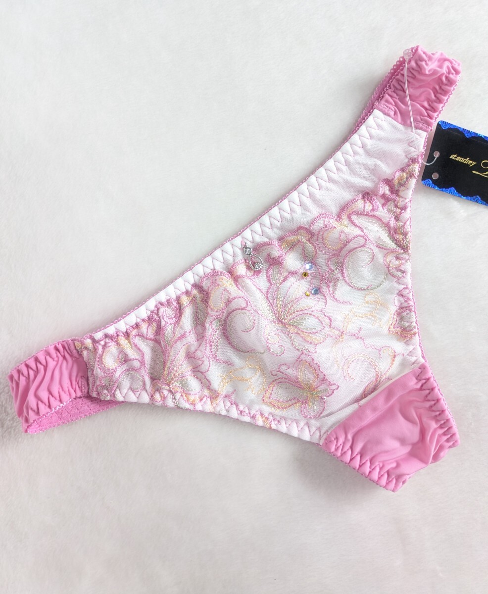 - お泊まりに☆TバックM☆未使用☆きれいアシメ刺繍レース☆ピンク☆☆匿名配送可☆タグあり☆