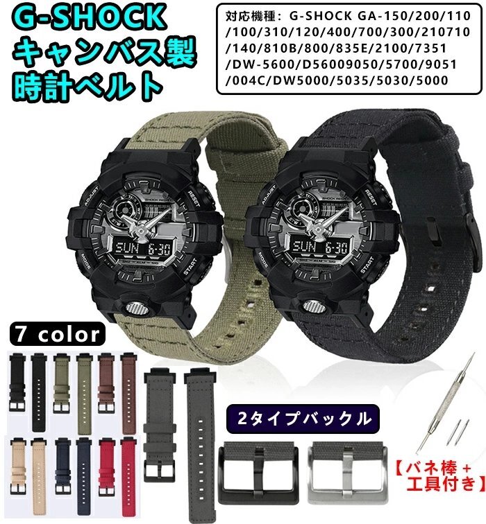 - G-SHOCK 対応 時計ベルト キャンバス 時計バンド クイックリリース 腕時計バンド 16mm 替えベルトパナライベルト☆6色/A/Bタイプ選択/1点