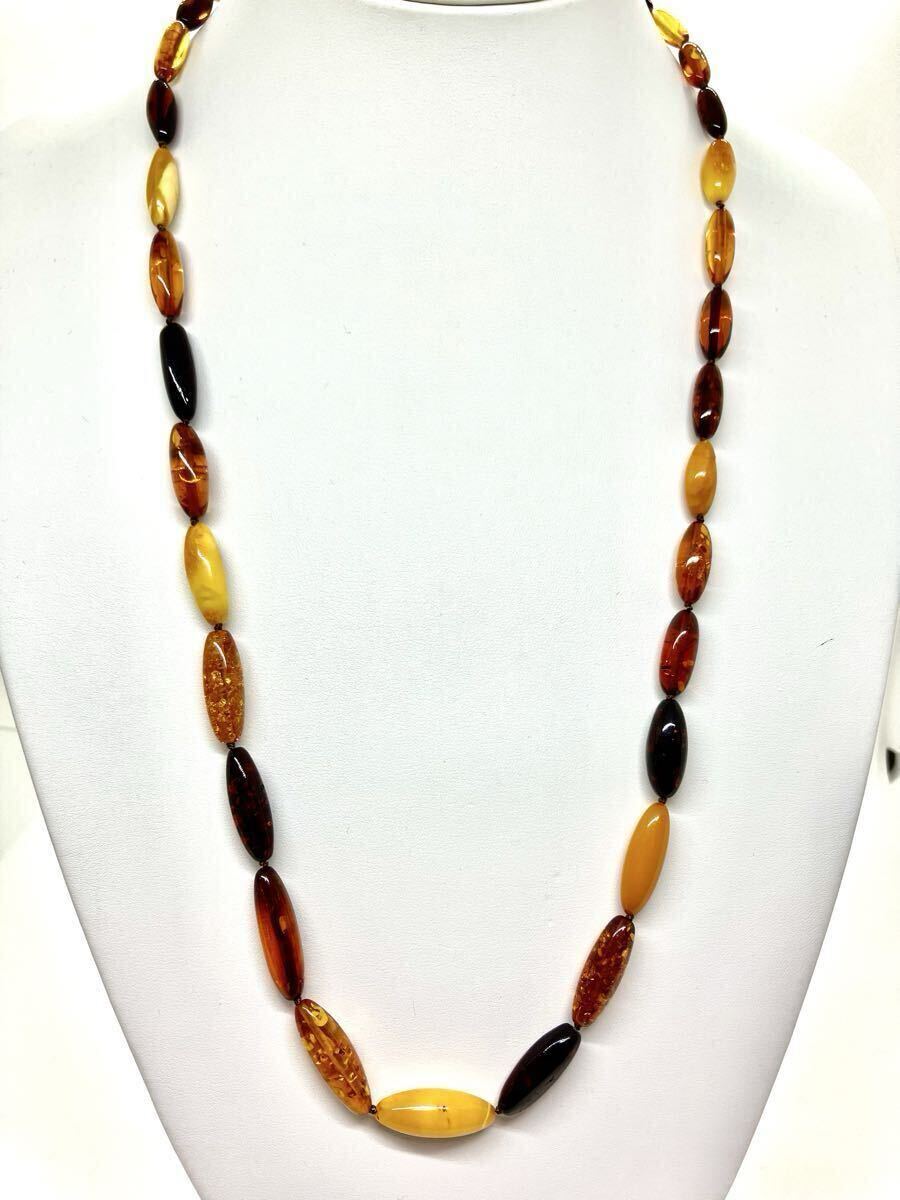 - 【新品】琥珀(こはく)マルチカラーロングネックレス*グラデーション*コハク*アンバー*ミルキー琥珀**スリーカラー*バルティック