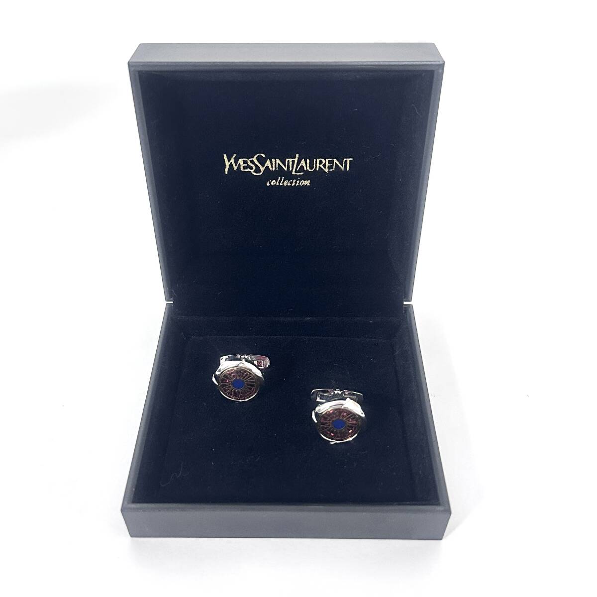 - SD2518 美品! 格安! YVES SAINT LAURENT イブサンローラン ロゴ ラウンド シルバーメタル カフス カフリンクス カフスボタン