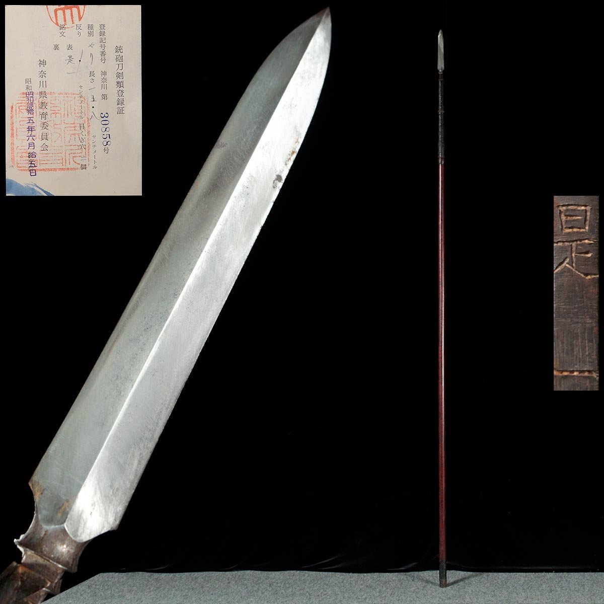 - UU874 時代武具【銘 是一】刀剣「槍」全長202cm/穂長15.8cm 登録証付 長柄武器 検)日本刀 甲冑