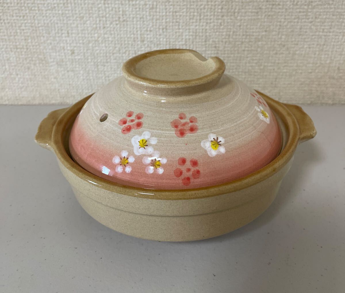 - 一人鍋 土鍋 こびき桜 陶器 両手鍋 横幅約18㎝ 高さ約11.5㎝ 深さ約6㎝ IH不可 14ー6