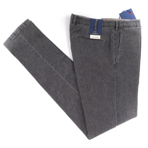 > 【新品未使用】SANTANIELLO サンタニエッロ◆Made In Italy◆46◆グレー ツイードプリント コットン スリム ストレッチ スラックス パンツ