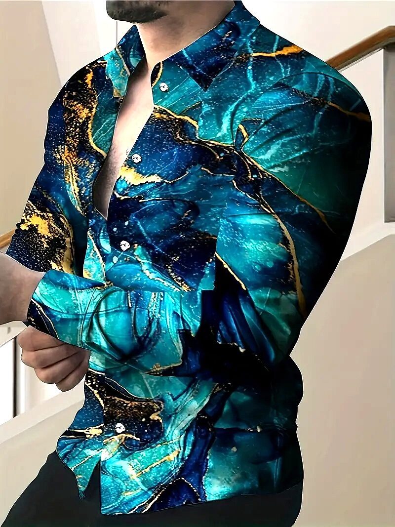 - アクアブルー 総柄 長袖シャツ 043 柄シャツ Yシャツ ドレスシャツ ヤクザ ヤンキー オラオラ系 服 派手 パーティー メンズ ファッション