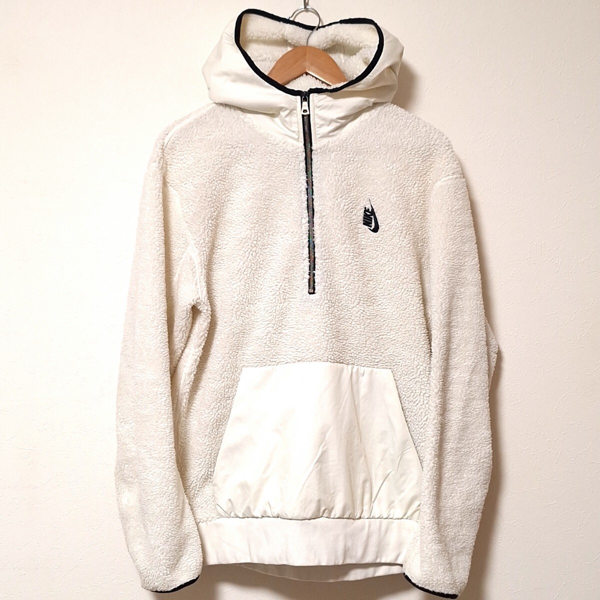 > W180【NIKE】ナイキ フリースジャケット アウター フード付き プルオーバー ハーフジップ スポーツ ウエア ホワイト メンズ サイズM /QQ