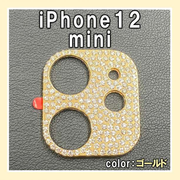 - iPhone12mini カメラ保護フィルム ラインストーン デコ ゴールド S