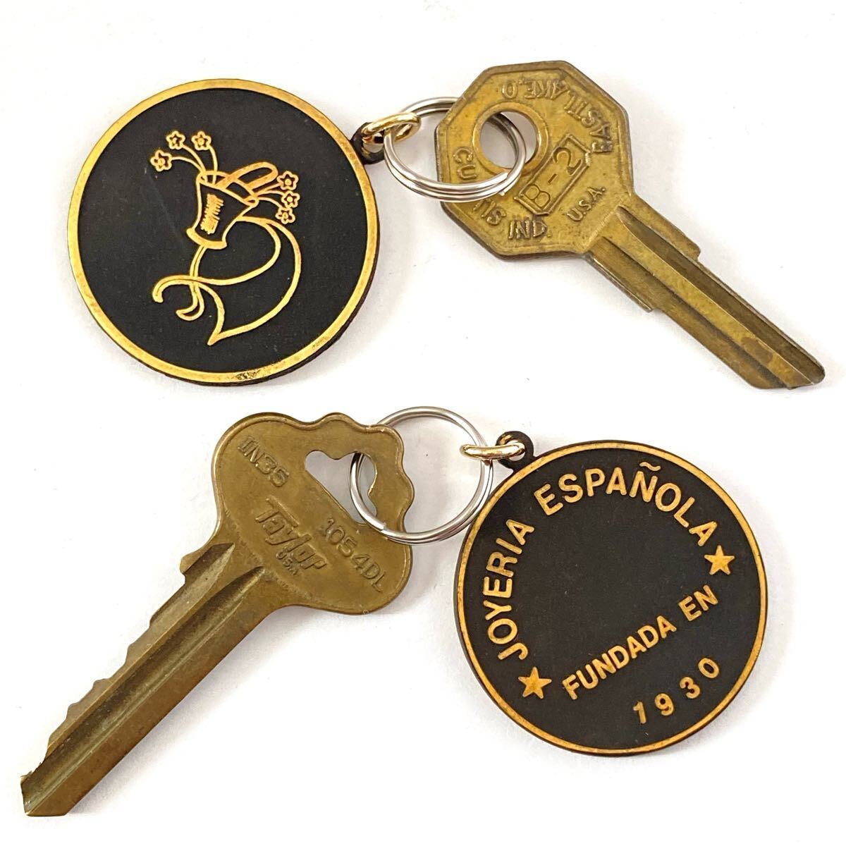 - 85当時物!1960年代アメリカ雑貨企業物旧車ヴィンテージ輸出用エンブレムプレート金属製☆キーホルダー真鍮鍵キーセット カギ 鍵ノベルティ