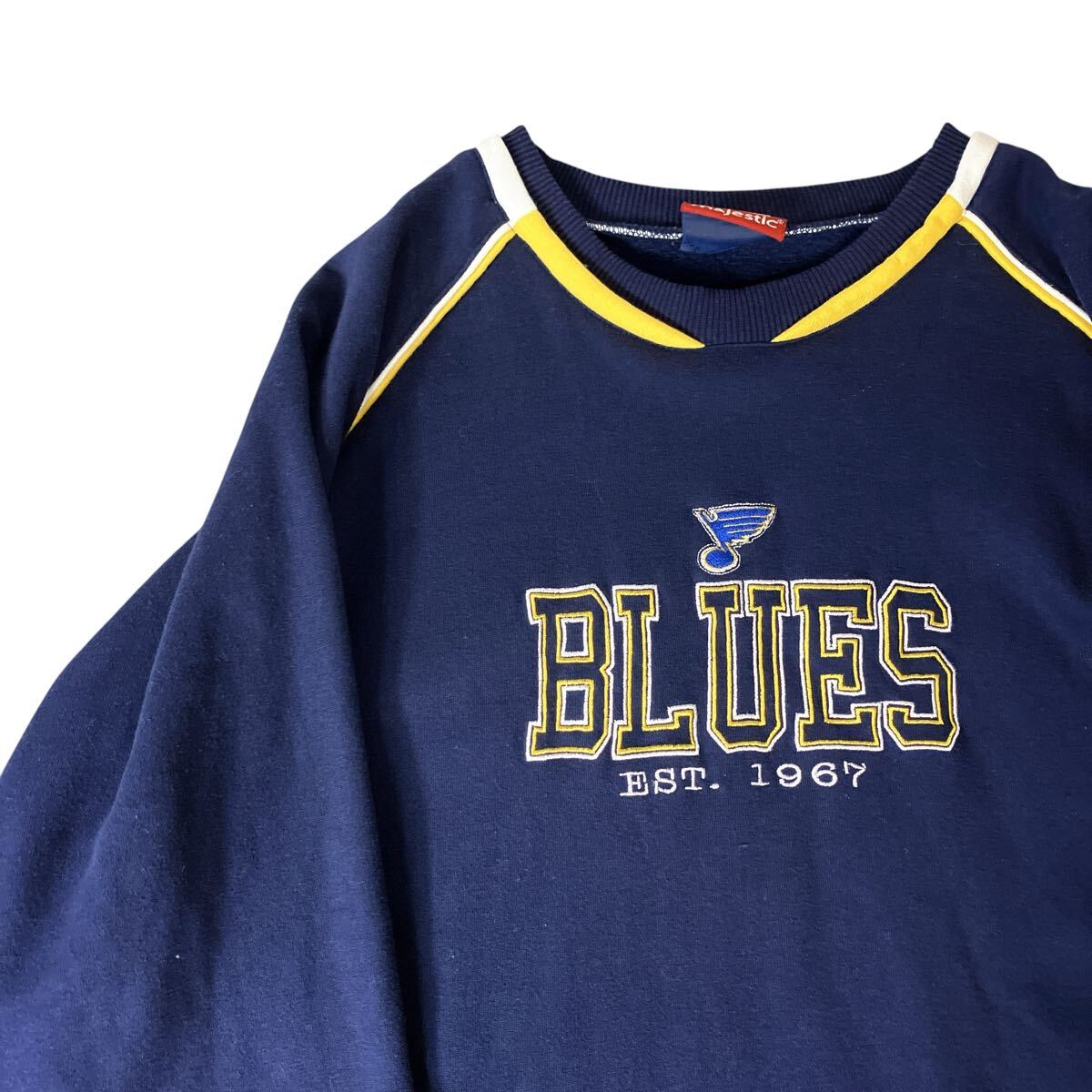 > セントルイス・ブルース 刺繍ロゴ チームロゴ スウェット 00sネイビー紺 古着スウェット トレーナー 古着 NHL アイスホッケー3XLサイズ相当