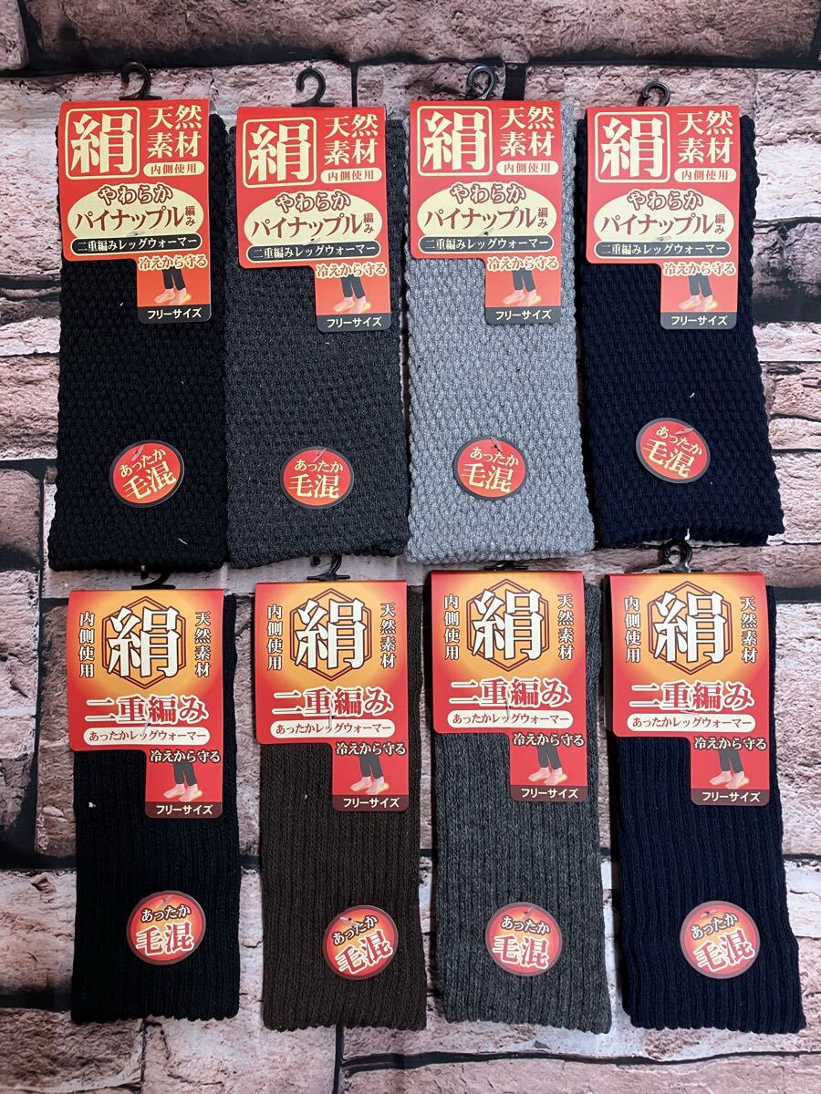 - 『画像から2足組』冷え性の方に 優れた保温力!絹混&毛混&綿混 パイナップル編み&リブ編み 二重編みレッグウォーマー