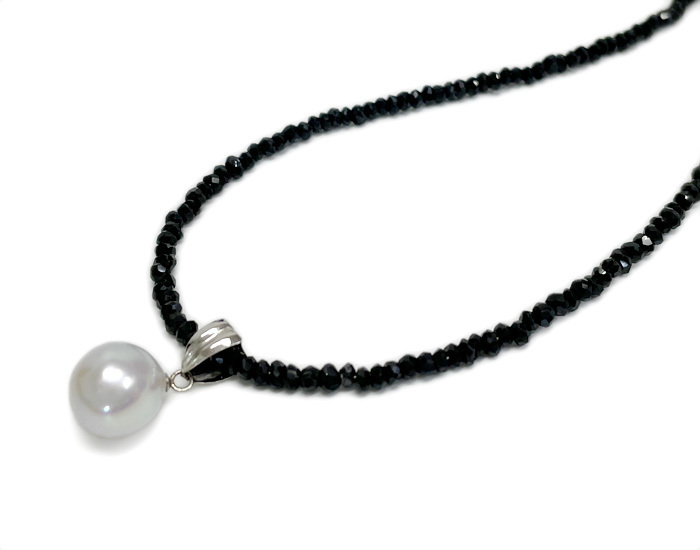 > 新健勝苑 SHINKENSHOEN 真珠 パール ネックレス ペンダント 和珠Nブラック ブラックスピネル Pt900/SV 総重量8.7g 黒珠9.000mm 品質保証付