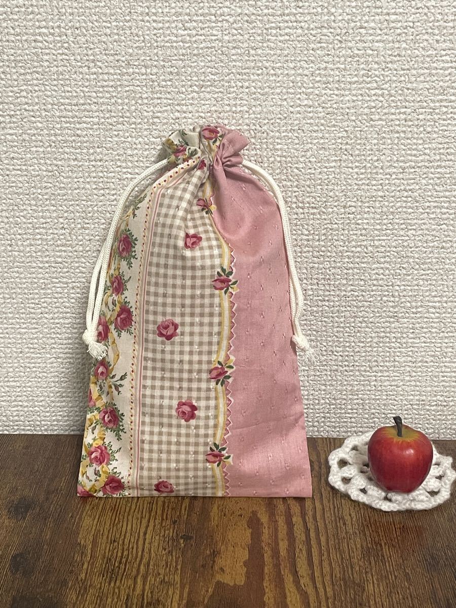 - ハンドメイド*シンプル縦長ミニ巾着袋 *コスメポーチ*小物整理等に☆ 花柄*23cm×13cm ♪