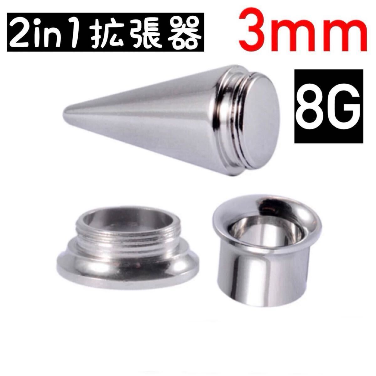 - ボディピアス 2in1 ピアス拡張器 3mm 2mm 8g ダブルフレア