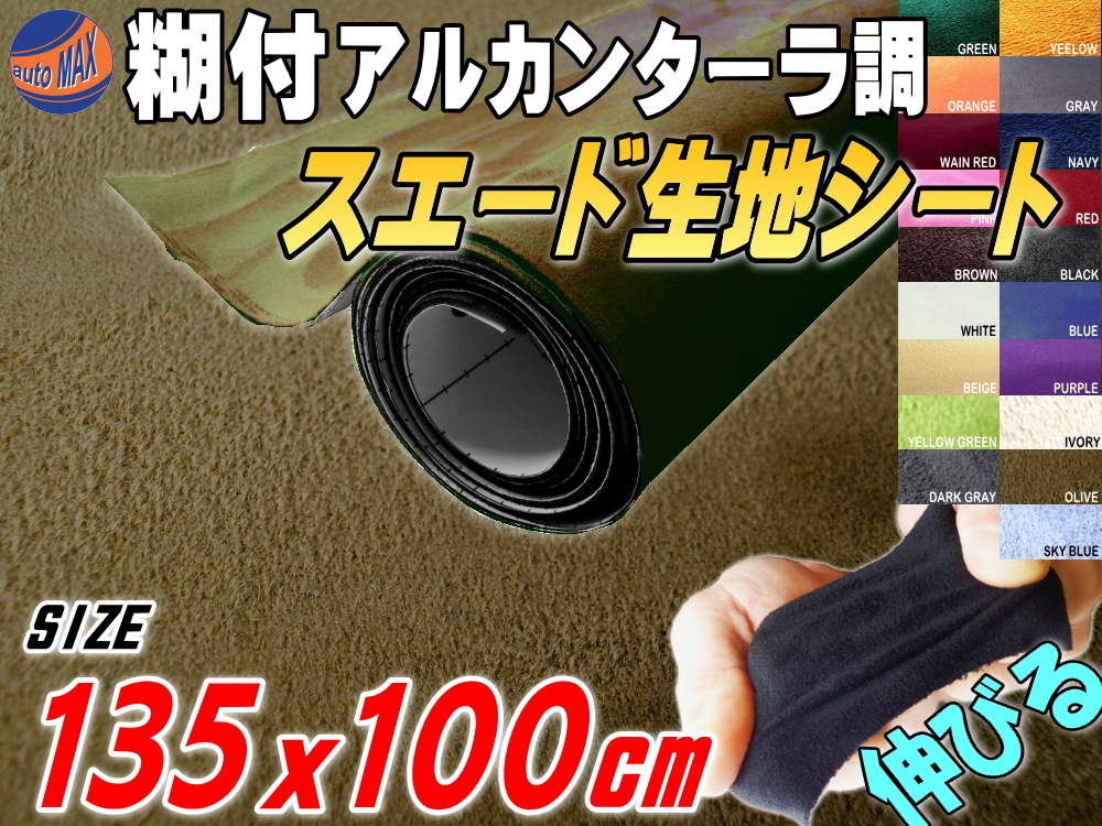 > スエード(大)オリーブ 幅135×100cm伸びるアルカンターラ調スウェード生地シート裏面糊付きカッティング可 シート内装ステッカー車 7