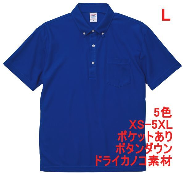> ポロシャツ 半袖 L コバルトブルー ボタンダウン 胸ポケット付き ドライ 鹿の子素材 無地 ドライ素材 カノコ 4.7オンス A2009 青 青色 2023