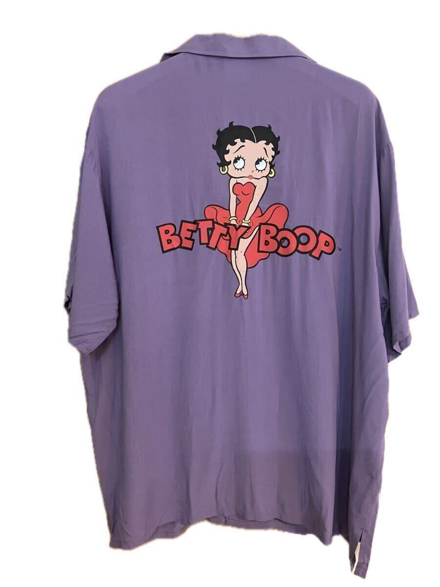 - 難あり未使用/BETTY BOOP(ベティ・ブープ)半袖シャツ/レーヨン/開襟シャツ/パープル/Mサイズ