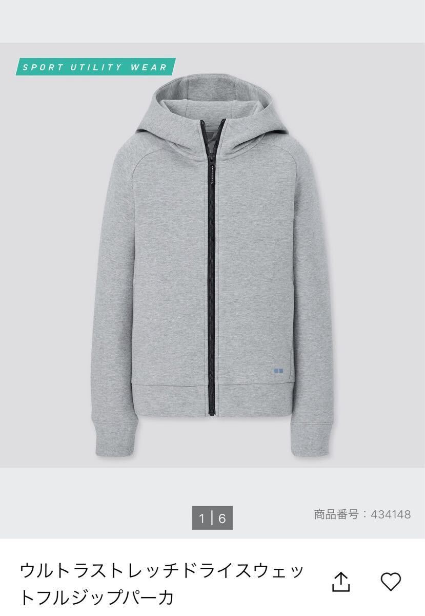 > ユニクロ ウルトラストレッチドライスウェットフルジップパーカ グレー 130cm