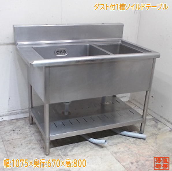 > ステンレス ダスト付1槽ソイルドテーブル 1075×670×800 業務用1槽流し台 中古厨房/25J0216Z