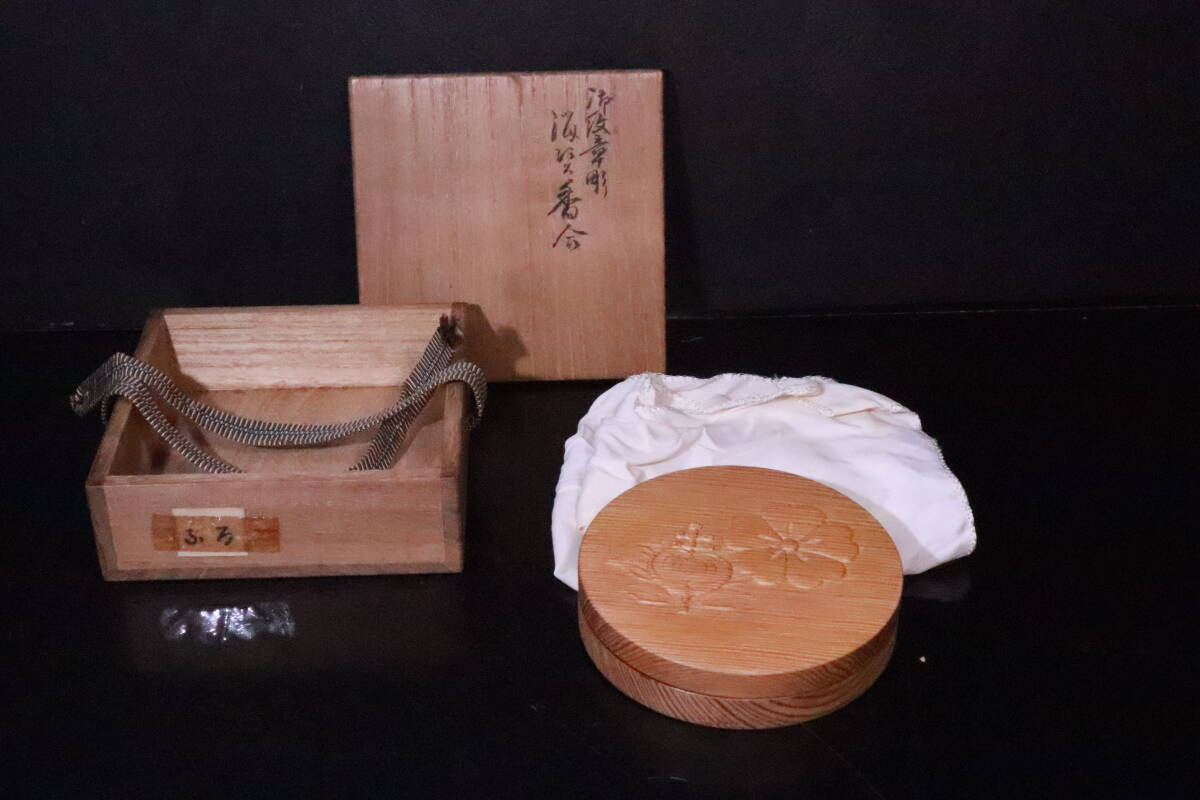 > 【hiroer】塗師 鈴木 表朔 造 御紋章彫 溜塗香合 ★検索★ 香炉 茶道具 盆 建水 菓子器 茶器 莨盆 棗 水指 窯 爐 茶碗 茶杓 蓋置