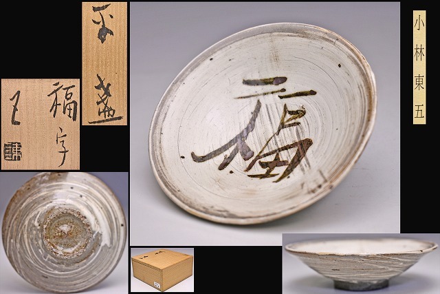 > 小林東五 ★ 刷毛目 福字 平ぐい呑 ★ 共箱 栞 ★ 高麗李朝写しの匠による吉祥の逸品 ★ 酒器 杯 盃 ★