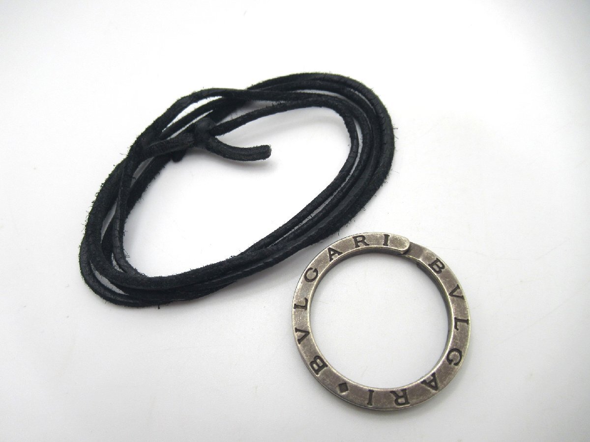 > ★【B送900円】2424 BVLGARI ブルガリブルガリ キーリング ペンダントトップ チャーム シルバー金具 ロゴサークル 革紐