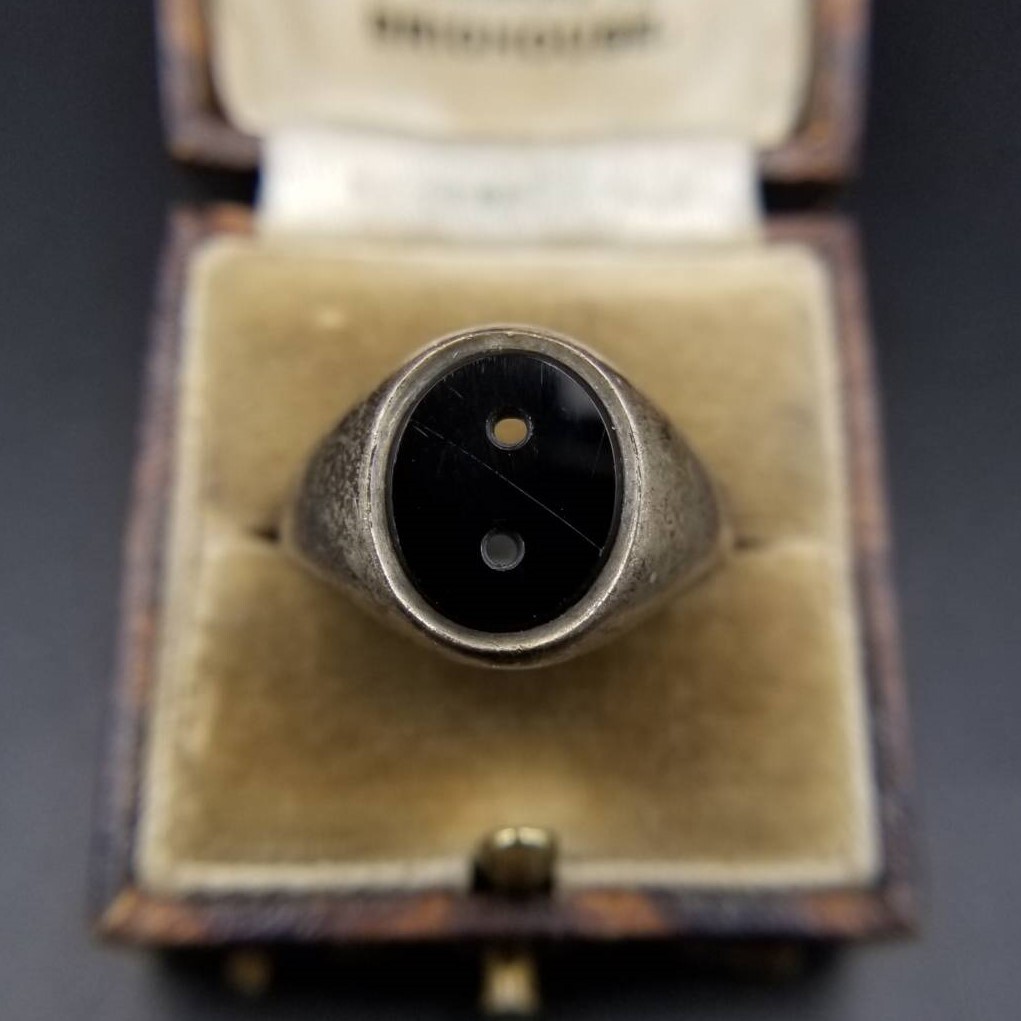 > 1982年 英国 ヴィンテージ オニキス オーバル 925 シルバー シグネット リング 銀 指輪 ミニマリスト Birmingham ホールマーク Y24-M