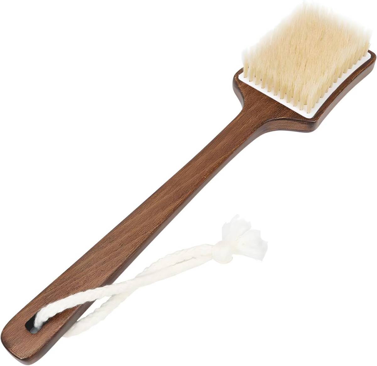 - ボディブラシ 角質ケア 天然豚毛 背中洗い 【血流促進&美肌マッサージ】浴室用 コンパクト設計 固形石鹸対応 保湿ケア 男女兼用
