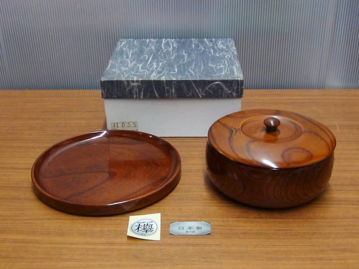 - 送料無料●国産けやき 盆付 菓子器 七寸●未使用品 天然木 欅