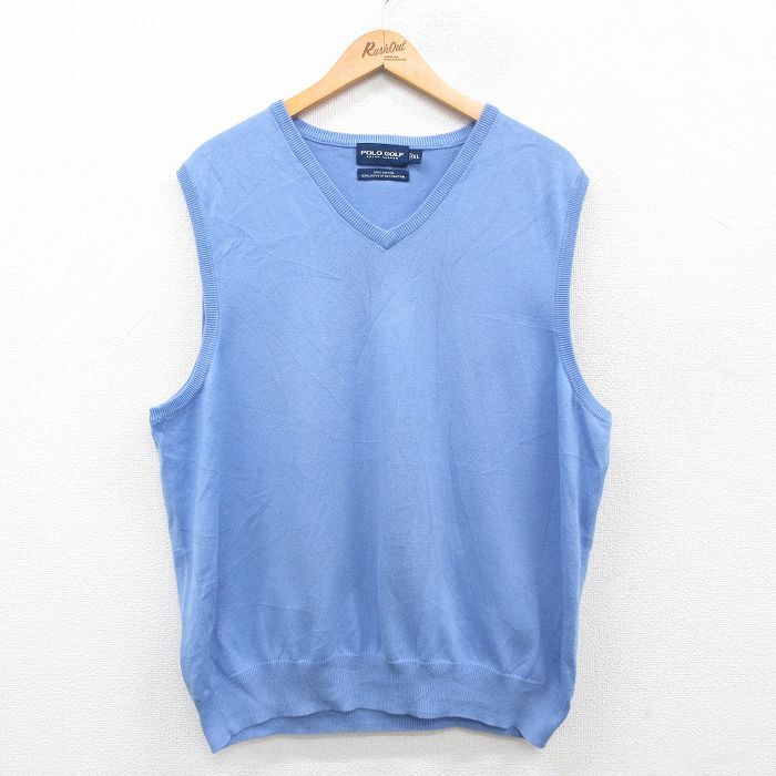 > L/古着 ラルフローレン ポロゴルフ ブランド ニット ベスト メンズ 90s 無地 コットン Vネック 薄紺 ネイビー 24oct10 中古