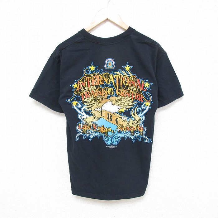 > L/古着 半袖 ビンテージ Tシャツ メンズ 90s 鳥 胸ポケット付き コットン クルーネック 黒 ブラック 25apr30 中古