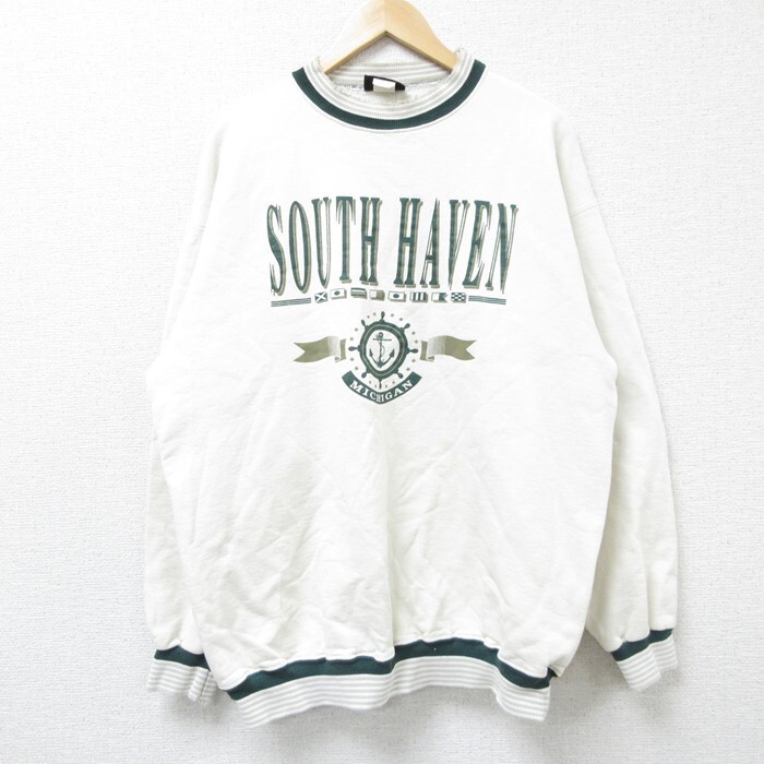 - XL/古着 長袖 スウェット メンズ 90s サウスヘブン イカリ クルーネック 白 ホワイト 24sep07 中古 スエット トレーナー ト