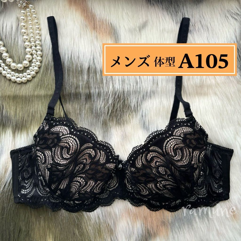 > ラスト【メンズ A105 黒】新品 男性用ブラジャー メンズ体型 取り外せるパッド付き メンズブラ 下着 レース アンダー大きめ 女装 男性向け