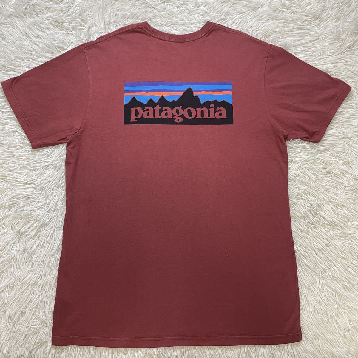 - 送料230円 美品 Lサイズ patagonia パタゴニア 半袖 Tシャツ ロゴプリント レアカラー エンジ レギュラーフィット オーガニックコットン