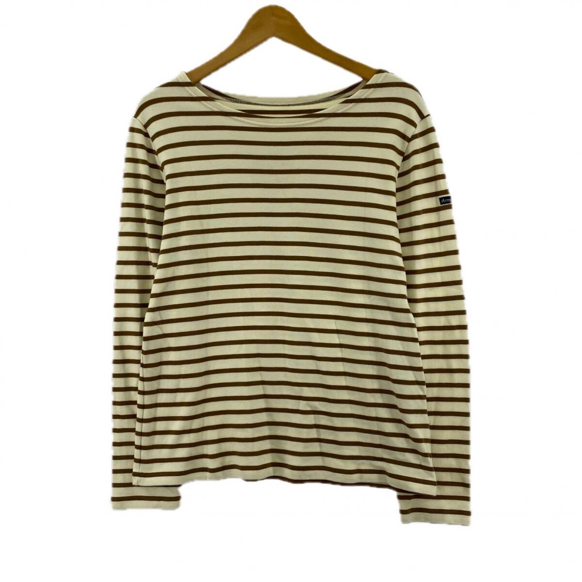 - Armor lux アルモーリュックス ボーダー ボートネック カットソー size40/アイボリー×ブラウン ゆうパケットOK