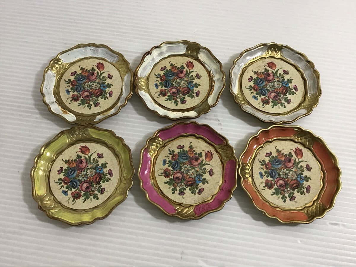 - ★アンティーク★ イタリア製 FLORENCE・ITALY 小皿 6枚セット コースター 花柄 絵皿 小物入れ フィレンツェ