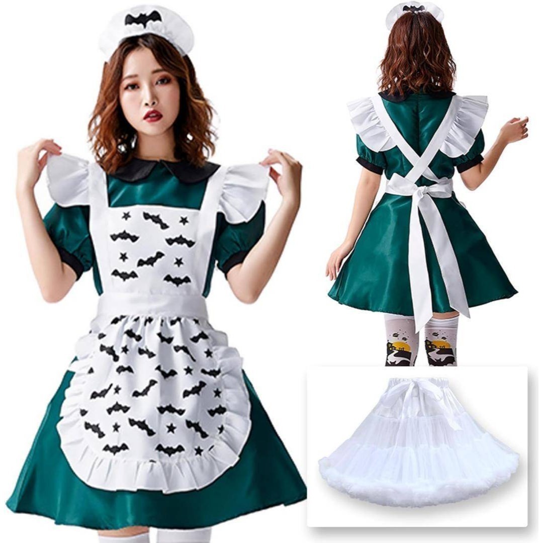 - ハロウィン コスプレ メイド服 パニエ コスチューム 仮装 カチューシャ【XL】