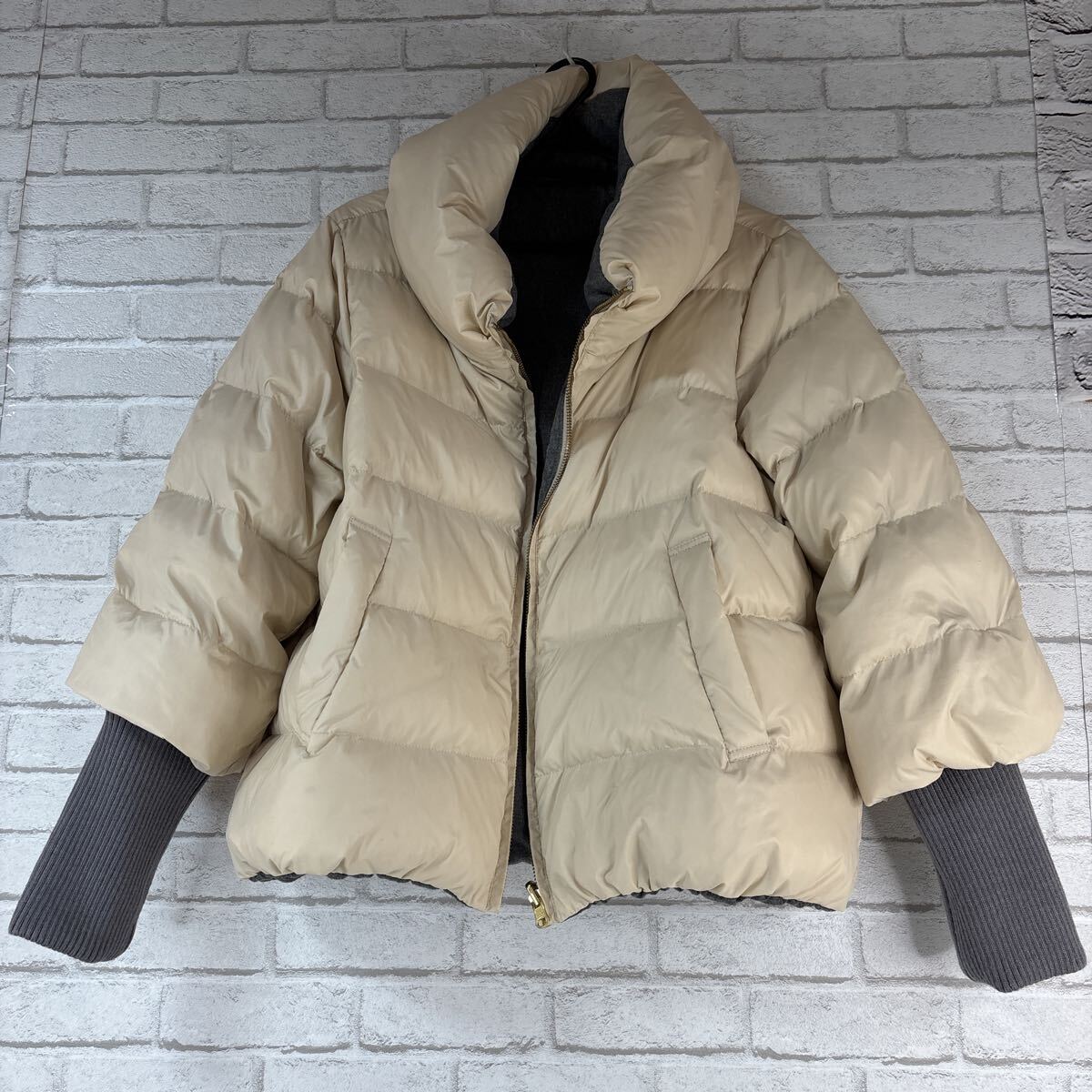 - liriito ダウンコート リバーシブル ショート丈 サイズ38 ベージュ×グレー ダウンジャケット アウター ベージュ