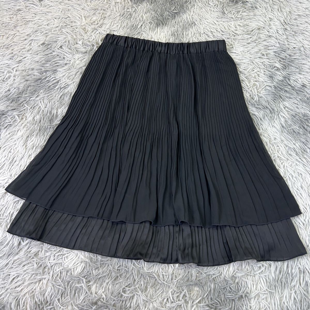- ANNA LUNA ナンナルナ プリーツスカート フレア 膝丈 ウエストゴム ブラック M