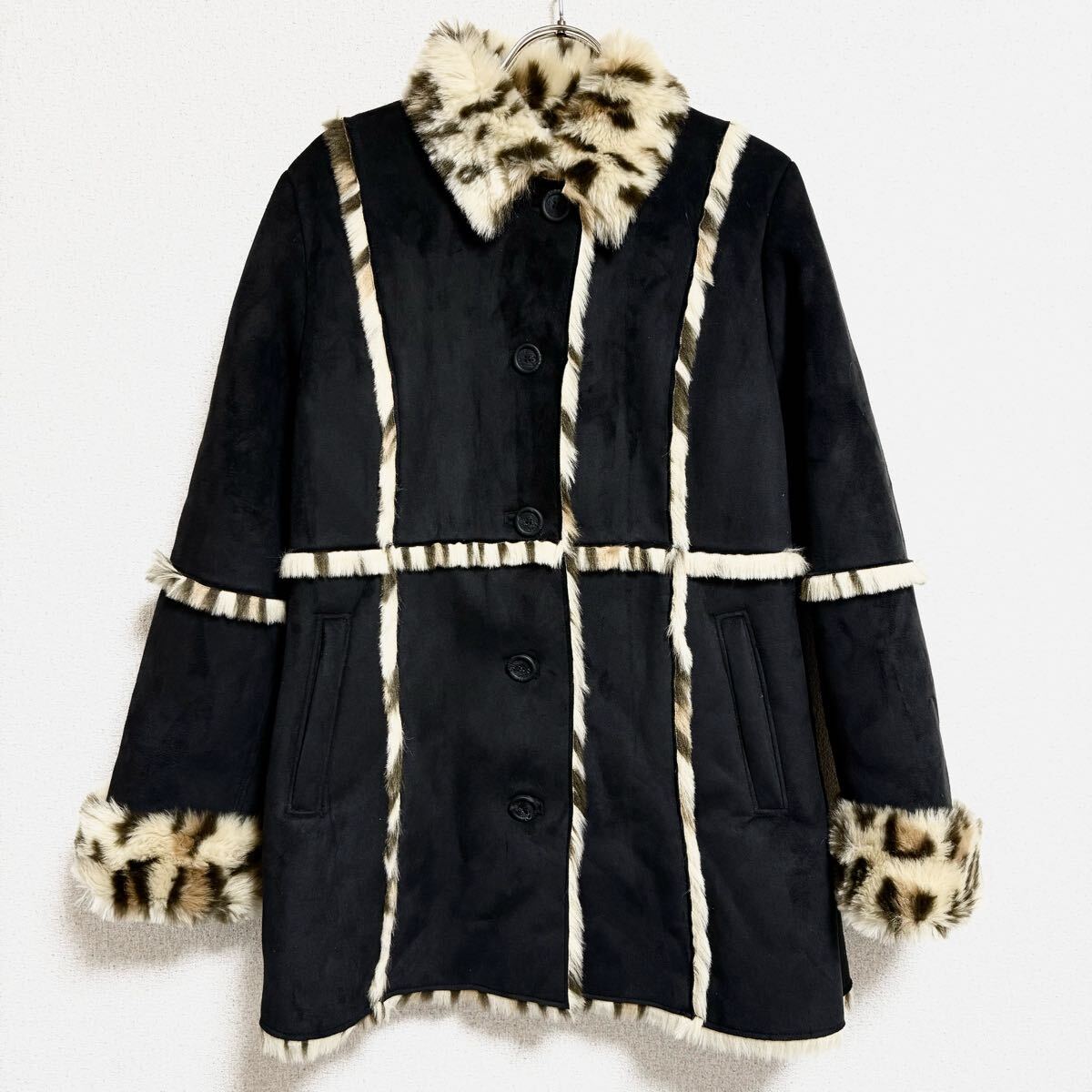 - B. by KRIZIA ビーバイクリツィア ファーコート ステンカラーコート ミドルコート スエード調 ブラック レディース サイズ L *DE