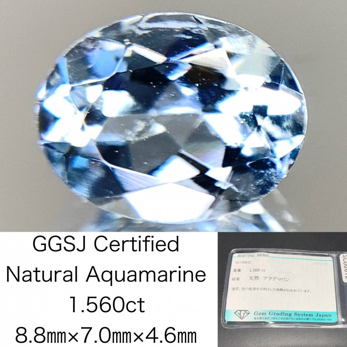 - アクアマリン 天然 1.560ct 宝石ソーティング付き 8.8×7.0×4.6 ルース( 裸石 ) 6783Y