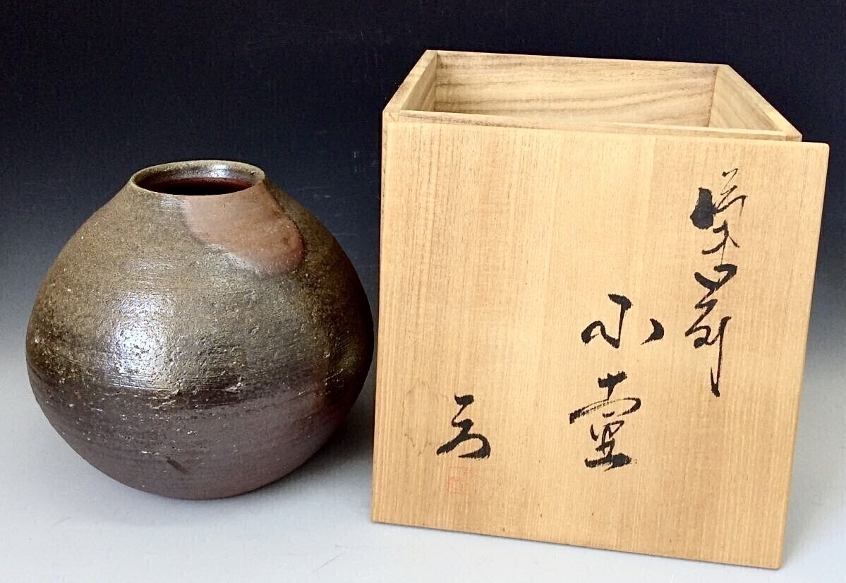 - 備前焼 見附文雄 花器 共箱付 共布 伝統工芸 華道 陶器 陶芸 作品 見附窯 花瓶 花入れ フラワーベース 中古品 美品 焼物 工芸品 管58129212