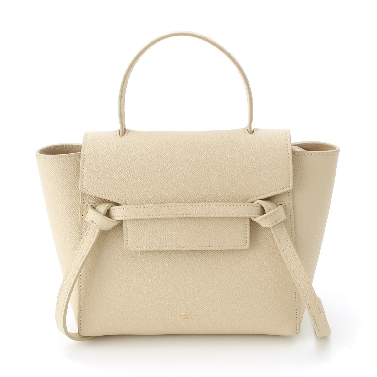- セリーヌ ベルトバッグ ナノ レザー 2WAY ショルダー ハンドバッグ アイボリー【中古】