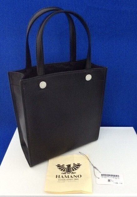 > ハマノ HAMANO 19.5×22cm ブラック 牛革 濱野 黒 日本製 レザー バッグ レディース ビジネス ミニトート 外箱付き 新品 美品 管44988514
