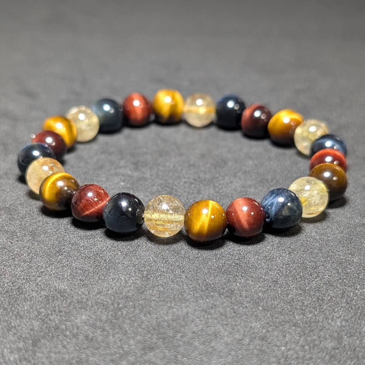 > ゴールド タイチンルチル 三種タイガーアイ 数珠 ブレスレット 成功へと導く天然石 パワーストーン お守り ギフト プレゼント 贈り物