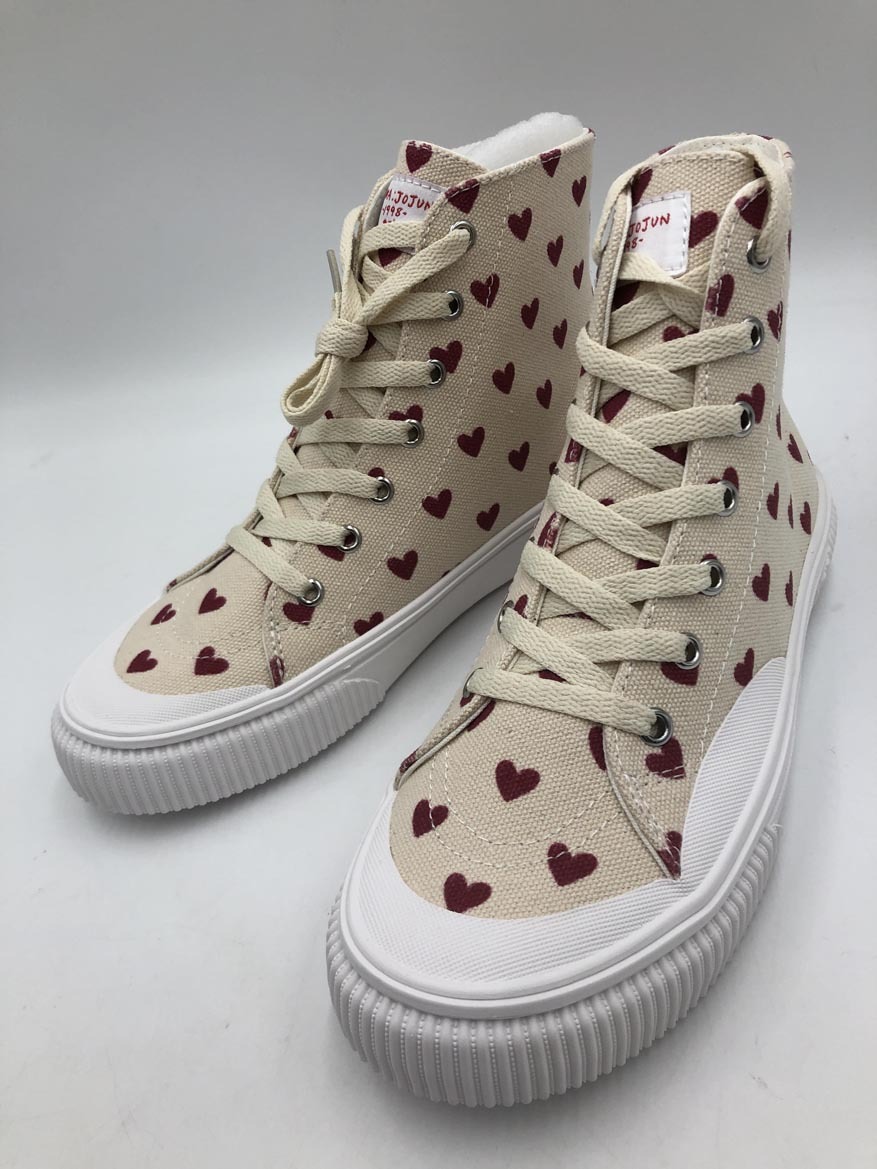> 展示品■TINA JOJUN ティーナジョジュン tnj913-0586 ハート柄 キャンバス スニーカー sizeL/レッド系 ■■◎ ☆ fib7 レディース