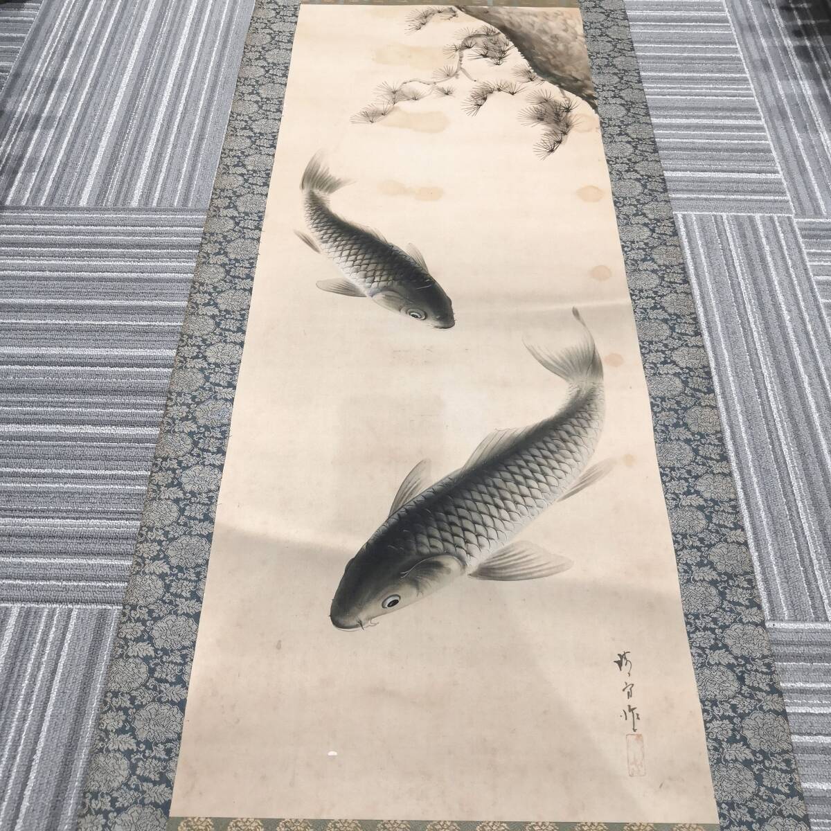- 【231】鯉 魚 巻物 掛け軸 掛軸 日本画 骨董 日本書 伝統品 骨董品 時代物 年代物 美術品 芸術品 コレクション
