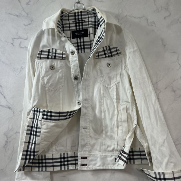 > バーバリーブラックレーベル ブルゾン ジャケット ノバチェック メタルロゴボタン アウター ホースロゴ メンズM 白系 BURBERRY B1472
