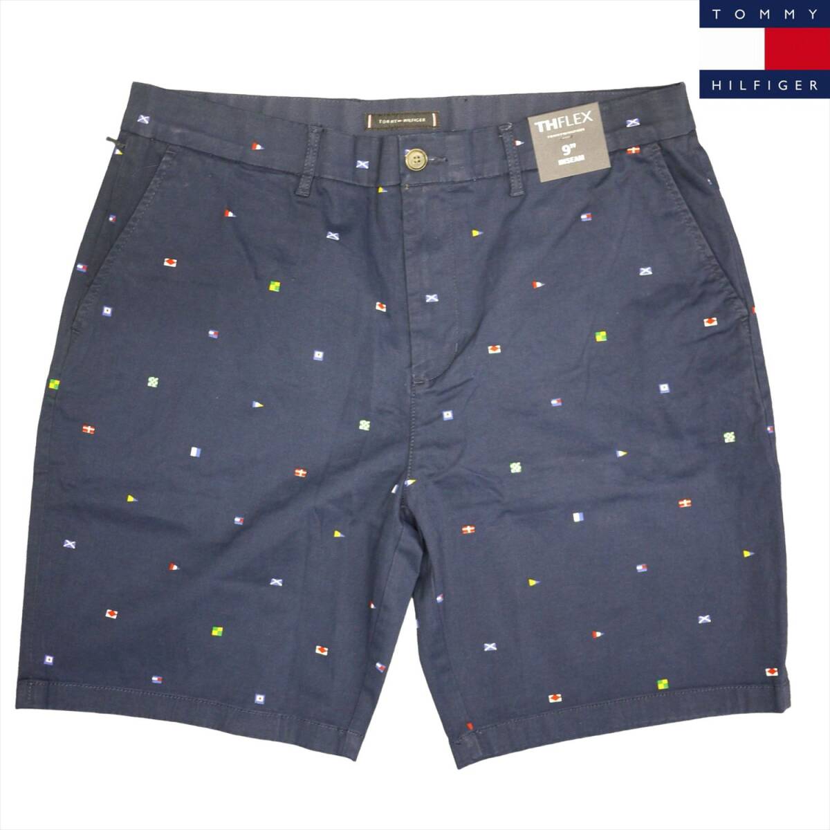 - 新品 トミーヒルフィガー ストレッチ ショートパンツ (36) ネイビー マルチ柄 ゴルフにも!TOMMY HILFIGER THFLEX USAモデル /fa32